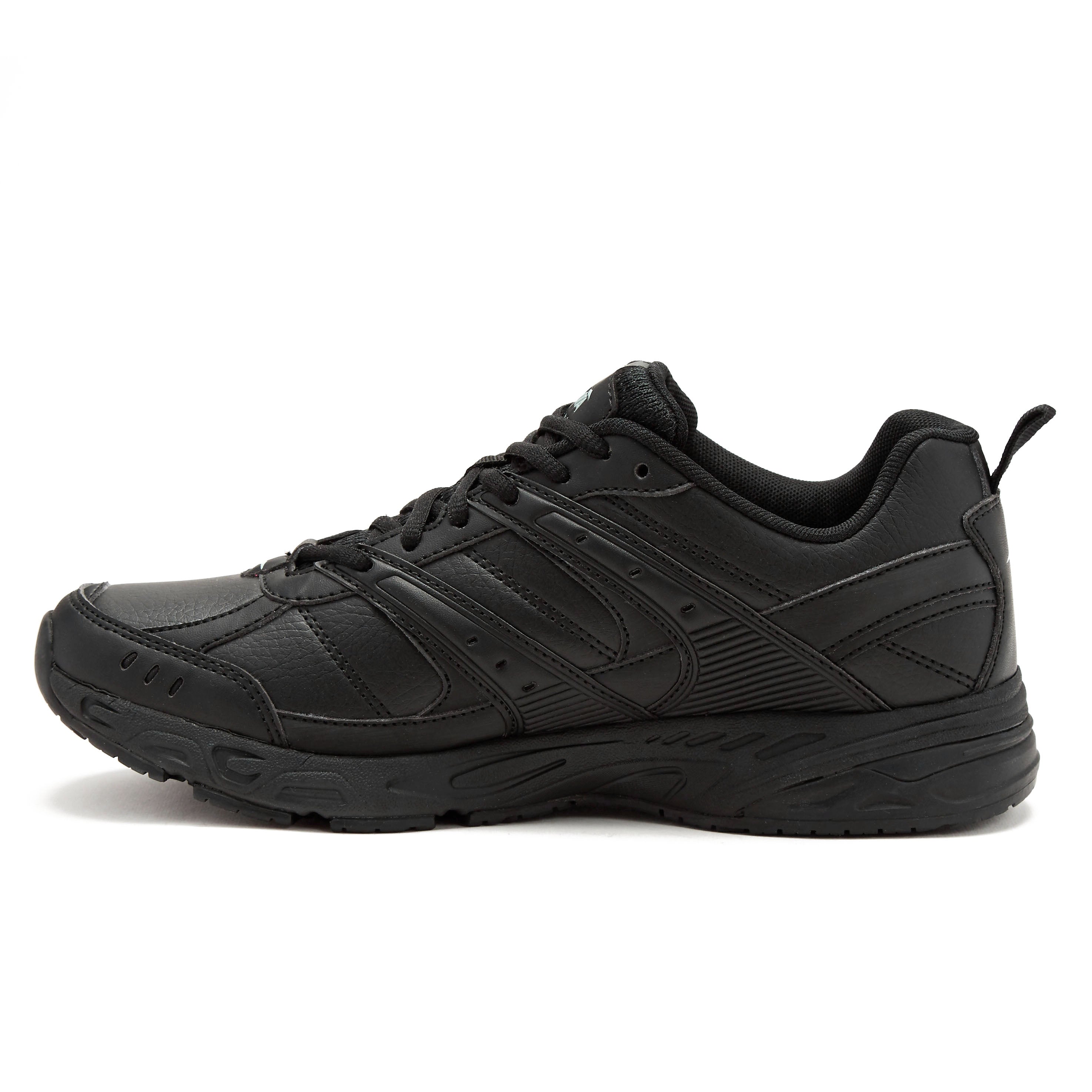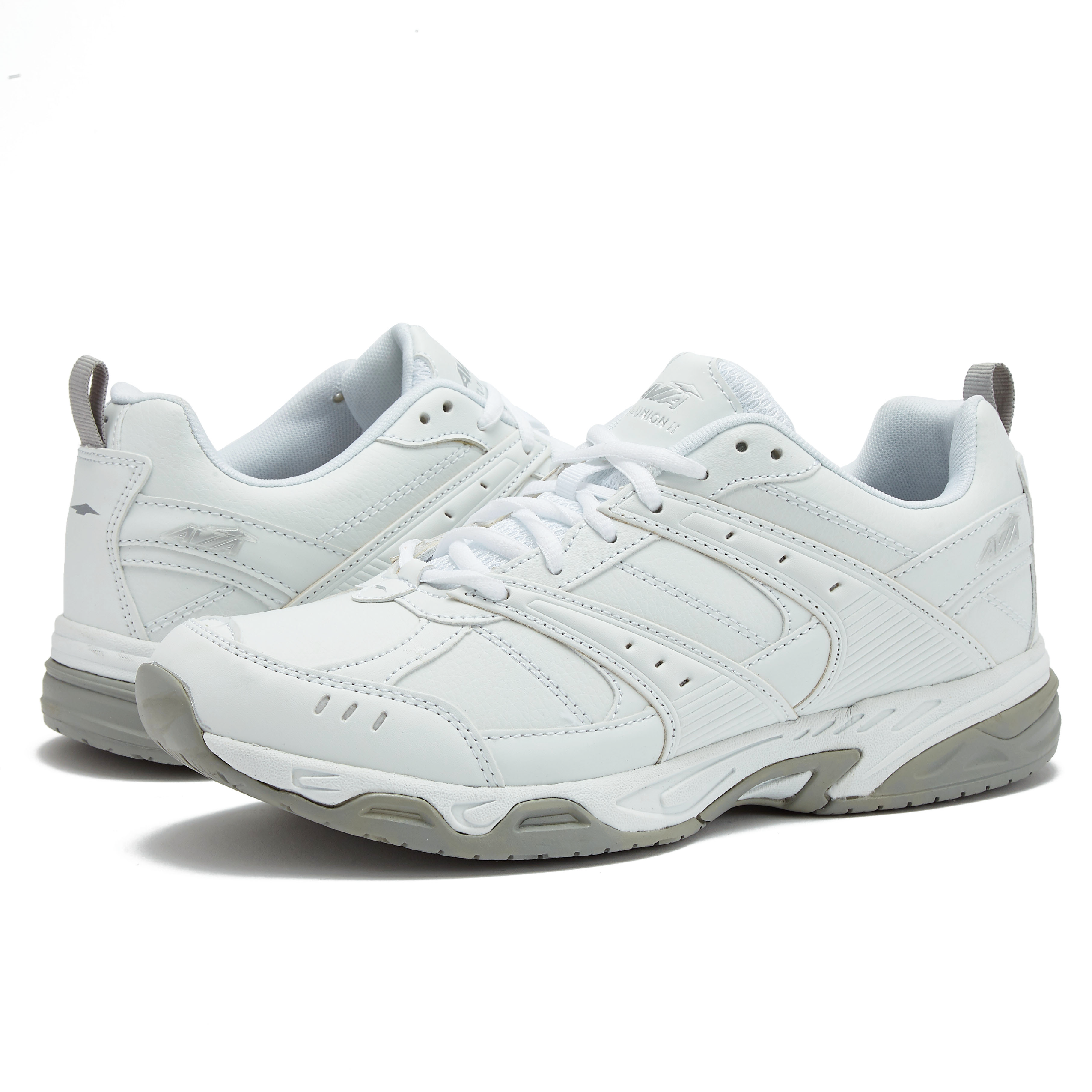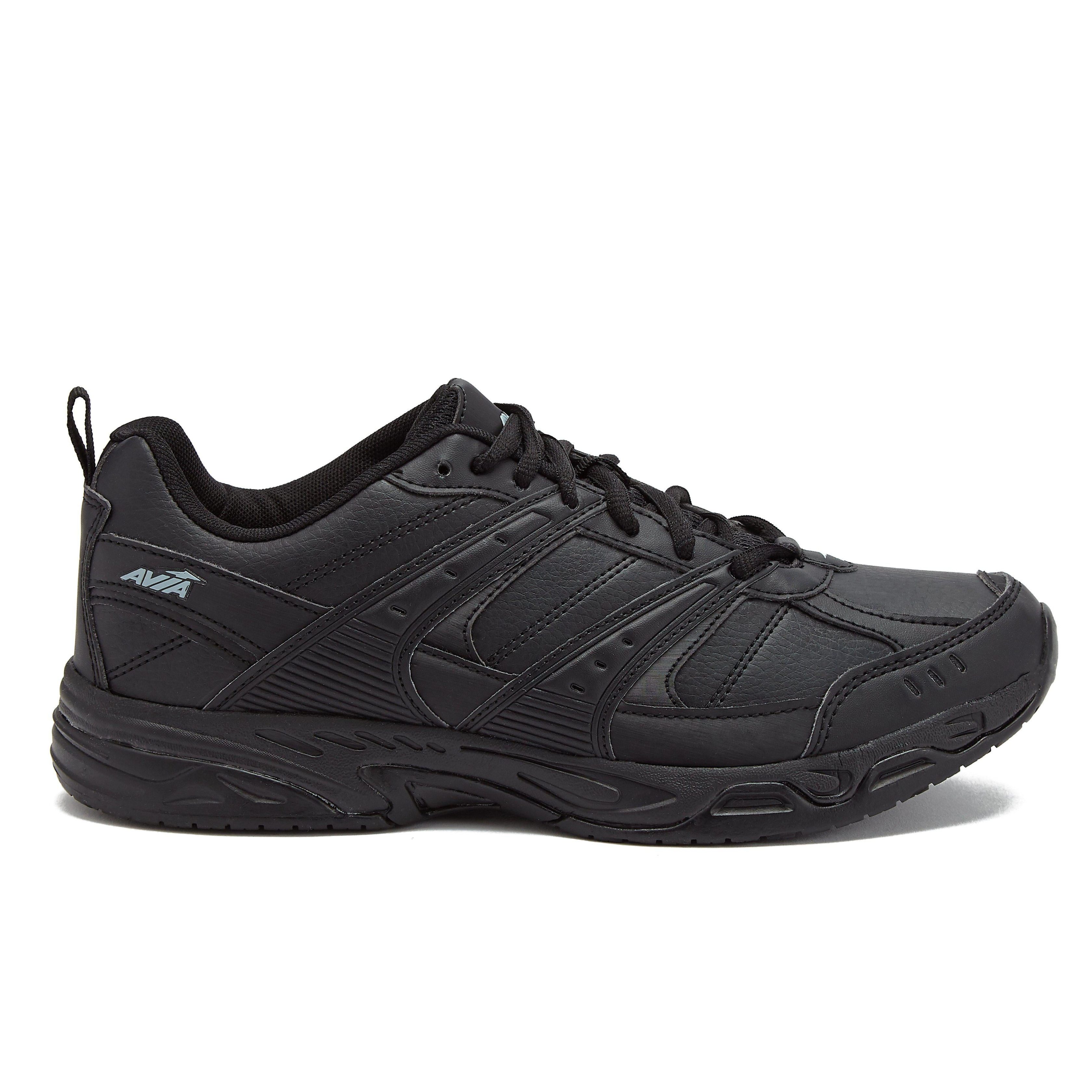 The thick rubber soles of the Avi-Union have an oil and slip resistant tread pattern for enhanced grip. specifically designed to prevent trapping of oil and liquid. and to be non-marking.? They help to secure sure footing in slippery environments like food service areas.?These comfortable shoes are perfect for people who are on their feet all day.? Waitresses. waiters. nurses. & other professionals who are standing and walking all day will love these lightweight. all-day comfort shoes. They’re also great walking shoes for travel.???Our?MEMORYf??m?responds to the unique curves of your foot to reduce pressure points for a personalized fit.?The compression molded EVA midsole. anatomical heel cradle. and Avia’s Cantilever ? Technology center and stabilize the heel. and provide exceptional shock absorption and cushioning.?